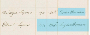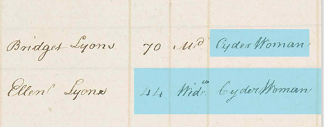 Amoung those records is a census of Carrick on Suir from 1799. This remarkably complete listing of every householder in the town was digitised and generously shared with the VRTI by the British Library. The text is fully word-searchable. It contains some wonderful detail for local historians, for example Bridget and Ellen Lyons of Lyons Lane in the town, each listed as a ‘cyder woman’.
